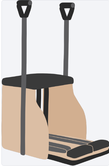 Mezi další pilatesovské stroje patří židle, která má několi různých variací -high chair, wunda chair, combo chair. Poslední zmíněnou variantu máme ve studiu, je doplněná o kovové úchyty a má dělený pedál s pružinami. Cvičení na židli je více silové.